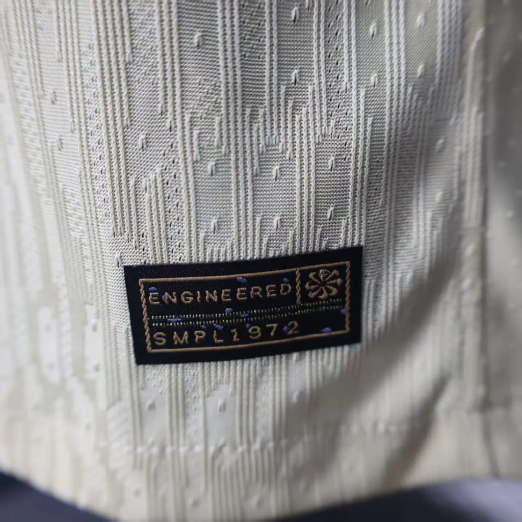 Nome e número impressos com a tipografia do clube.